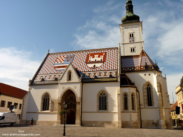 Cito: «La iglesia de San Marcos, en cuyo tejado se representan el escudo del Reino tripartito de Croacia, Dalmacia y Eslovenia y el de la ciudad de Zagreb».